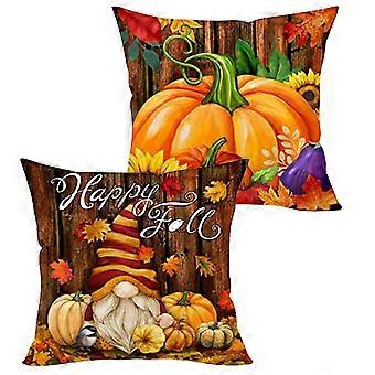 Bobasndm 2 stk. dekorative efterårspudebetræk 18"x18" bondegårdsdekoration græskarnisse æbler solsikkelastbil til efterår Thanksgiving-hjem