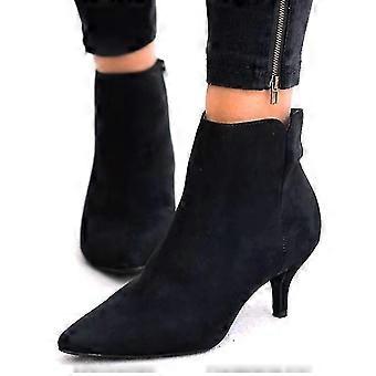 Chelsea Ankelstøvler til kvinder Lav Mid Kitten Hæle Casual Zip Pointy Booties Sko Flere størrelser tilgængelige