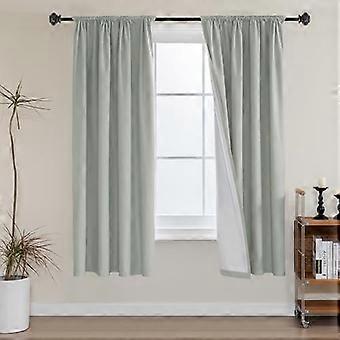 100% Blackout Thermal Curtains 63" – Light Sage, Rod Pocket, White Liner, 2 Panels, Energy Saving, Compatible with Standard Rods