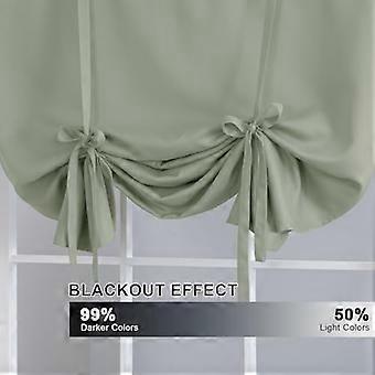 Solid Blackout Curtain Energy Efficient Tie Up Shades Rod Pocket Panel for Kitchen (Light Sage, 42W x 63L, One Panel)