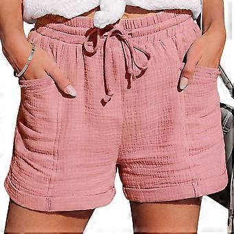 Dameshorts med høj talje, bindebånd foran, løse, vide ben og lommer, afslappet sommer, sort S