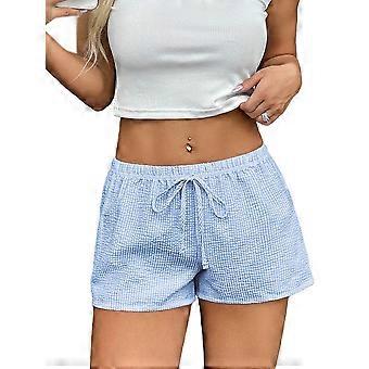 Dameshorts med striber og snøre, elastisk talje, afslappet, brede ben, lav talje, sommerboksershorts, lyseblå, S