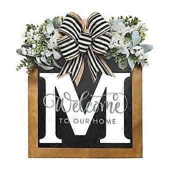 2025 Ny dørkrans til efternavn året rundt med velkomstskilt med 26 bogstaver, eukalyptusguirlande og sløjfe – kompatibel med standard dørophæng