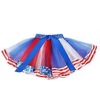 1 stk flag trykt mesh nederdel mode kvinder kjole elastisk talje festkjole til uafhængighedsdag størrelse (farverig)