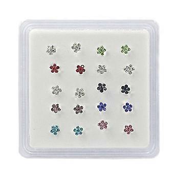 20 stk/æske kvinder blomster rhinsten forsølvet næse stud krop piercing smykker flerfarvet