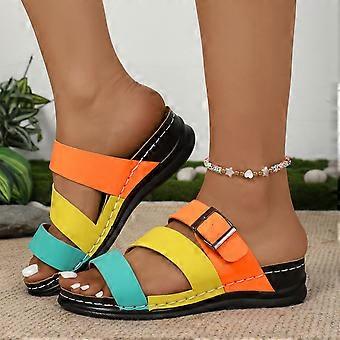 Ketyyh-chn99 Dame Forårssandaler, Slip-On Kilesandaler med Åben Tå og Ankelrem, Pæne Sandaler, Komfortable Sommer Orange, Størrelse 6.5