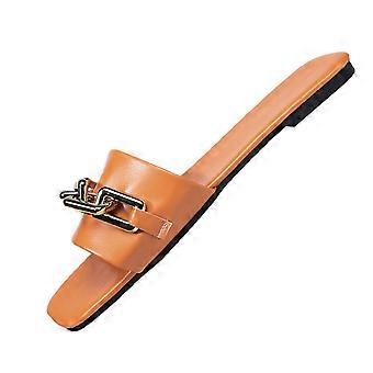 Orange Women'S Casual Sandals Comfortable Slip-On Square Toe Flat Sole One-Strap Outdoor Indoor Summer Footwear Pu Size 38 Eu 0.47 Lbs