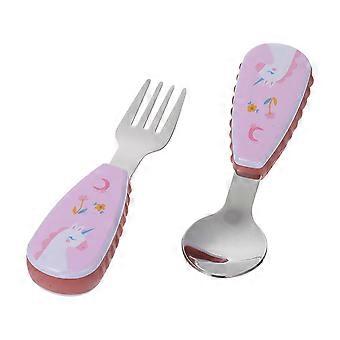 holdbare lyserøde babyskeer og gafler sæt sikkert rustfrit stål træningsservice til hjemmebrug 2stk
