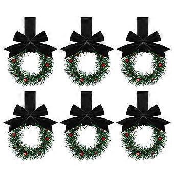 For Mini Christmas Wreaths 6-Pack with Bow Easy Hang Festive Decor for Window Door Wall Home Office