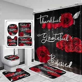Gul Rose Bruseforhæng Sæt med Tæppe, Toiletovertræk og Kroge - Grateful Badeværelse Decor, 72x72 tommer