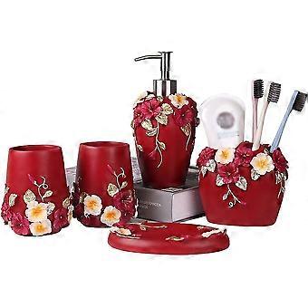 Badeværelsesartikler i fem dele - Harpiks Badeværelsestilbehør Sæt Nygift Housewarming Romantisk kærlighed Valentine Gave Badeværelse tilbehør/rød