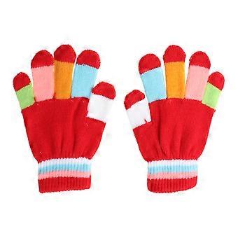 Vinterbørn Farverige stribede strikkede drenge Piger Solid handske Multi Color
