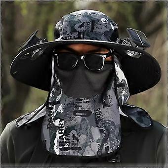 Sombrero Con Ventilador Solar, bred skygget solhat med 2 solar ventilator til udendørs