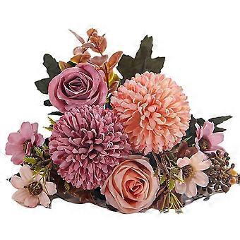 Kunstig rose- og hortensiabuket – sandrød, midtpunkt til bryllupsbordet, fotorekvisit