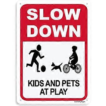 Aluminum Slow Kids Pets at Play Sign, 8x12 Inch, Slow Down Sign for Street, Lawn Neighborhoods