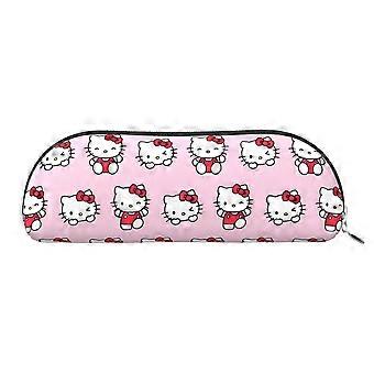 Hello Kitty læder penalhus med halvcirkel og lynlås, stor kapacitet, multifunktionel PVC halvcirkelformet opbevaringstaske