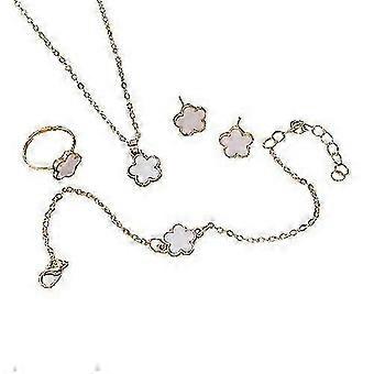 Mode Klassisk Fem Blade Blomst Smykker Sæt Til Kvinder Simpel Plante Græs Armbånd Halskæde Øreringe Ring Smykker Romantiske Gaver