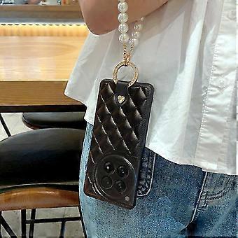 Til Oneplus 12 etui, blødt rhomboid PU-læder stødsikkert cover med perlekæde kompatibel med OnePlus 12 5G, til kvindelige piger
