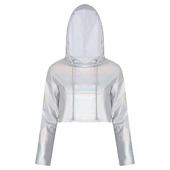 Dame Metallisk hættetrøje Crop Top Mode Langærmet Hættetrøje med snøre til Rave Fest Musik Festival Scene Ydeevne Kostume