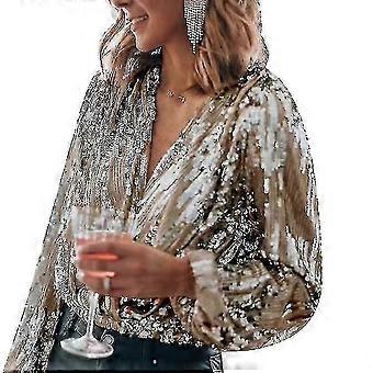 Kvinder Pailletglitrende V Hals Langærmet skjorte til fest