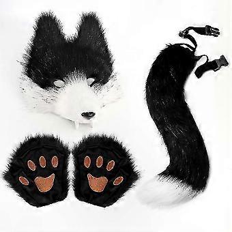 Simulering ulv maske sæt ulve tænder tredimensionelle cos dyr hale plys hale Halloween dans fest rekvisitter