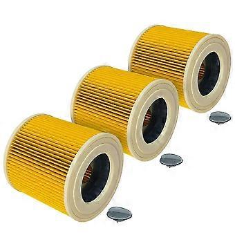 3-Pack Pleated Filters for Krcher A2500/A2554/A2574 Vacuums (Yellow Cartridge)