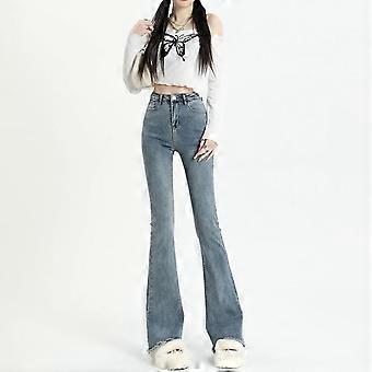 Grå Flared Jeans Dame Forår Efterår Højtaljet Slim-fit Bukser Retro Y2K Gade Kvinde Denim Bukser