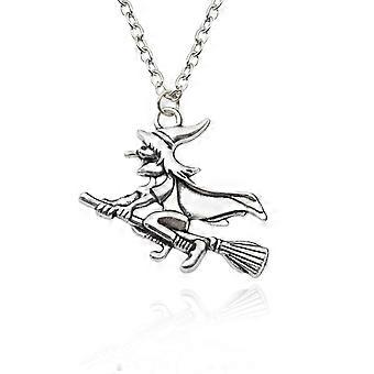 Vintage sølvheks på kosteskaft halskæde gotisk retro tryllekunstner vedhæng kæde choker amulet mænd kvinder tilbehør halloween ferie smykker bijoux c