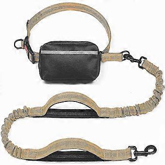 Hands-Free Dog Leash with Zippered Pocket, Double Reinforced Handle, Elastic Cord, for Walking/Jogging, Medium 8-25 lbs, Khaki