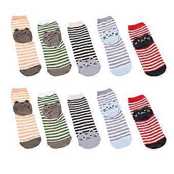 Yndige kattesokker Cartoon Bomuld Midt på læggen Længde Skridsikre Varme Sokker Kvinder Dagligt Tøj 5 Par