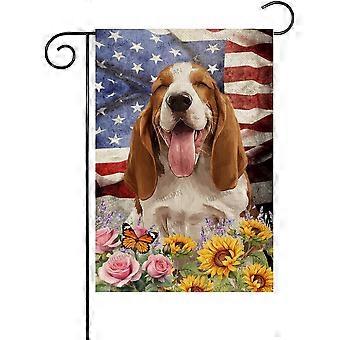 Basset-Hound Flag 28x40 tommer 4th of July Dekorationer Udendørs, Basset-Hound Garden Flag American Patr