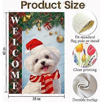 jul maltesisk-hund have flag til udendørs dobbeltsidet velkomst rød stribet tørklæde julemand hat hund y