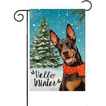 doberman haveflag 28x40 tommer dobbeltsidet, hej vinterhund med tørklæde juletræ gård flag (