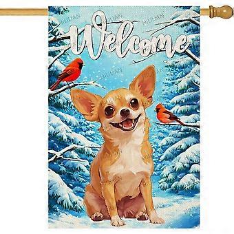 Velkommen Vinter Have Flag, Chihuahua Cardinal Yard Flag til Sæsonbestemt Jul Vinter Farmhouse De