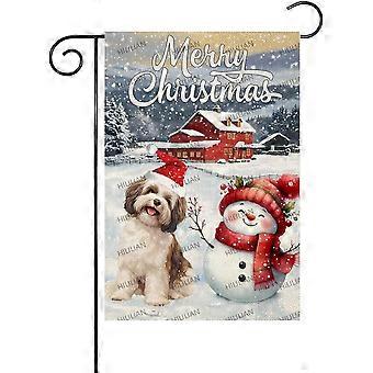 Glædelig jul snemand have flag 28x40 dobbeltsidet til udenfor, havanais-hund flag vinter xmas hol