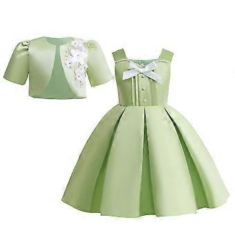 Toddler Girls Princess Two-Piece Dress Set: Sleeveless Pleated Evening Dress + Short Cardigan Cover-Up, Green – Compatible with Kids' Parties