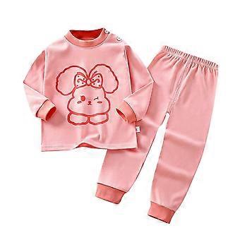 Baby Girl Outfits Toddler Fashion Boys Casual Long Sleeve Tops Round Neck Collar Botton Printed Long Pants Sets Pink 2 Years