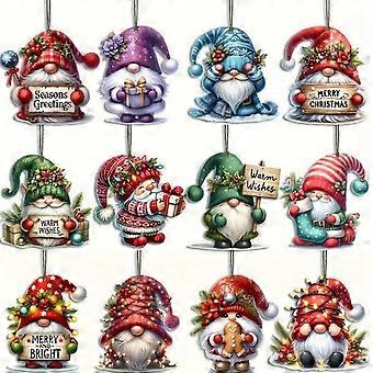 48 Pieces Gnome Ornaments for Christmas Tree, Assorted Gnome Wooden Hanging Ornaments Christmas Tree Hanging Decorations Holiday Party Supplies
