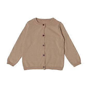 Girls Cardigan Long Sleeve Kid Button Sweater Girl Crew Neck Cardigans Sweater Toddler Sweaters, Khaki 6Y