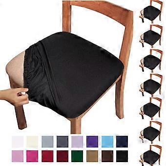 Sædebetræk til spisestuestole sæt med 8 - Strækbar pasform, aftagelig, vaskbar, støvtæt skrivebordsstol sædehyndebeskytter - Sorte stolebetræk