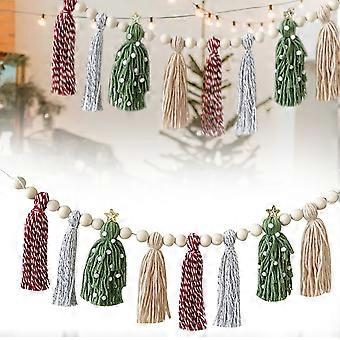 Boho julegave-guirlande med 8 pastelfarvede stofkvaster med makramedetaljer og naturlige træperler til væg og træ