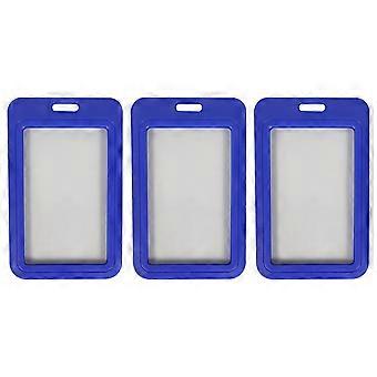 3-Pack Card Holder Set, Clear Plastic ID Badge Holder, Top Slot for Lanyard & Keychain, Reusable PVC Card Sleeve for Work Office Access Card(Blue)