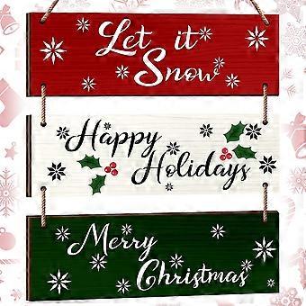 3 stykker juletræskilte hængende træ vægskilt snefnug vægindretning træ hængende ornamenter til hoveddør veranda indendørs udendørs boligindretning (viv