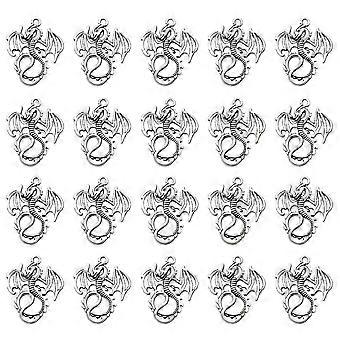 20pcs Alloy Flying Dragon Shape Pendants Charms DIY Jewelry Making Accessory for Necklace Bracelet (Antique Silver)
