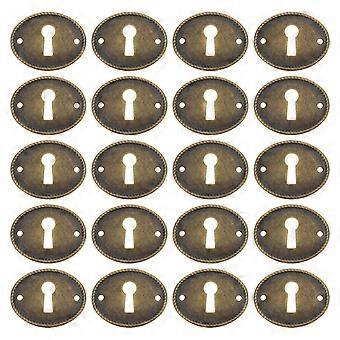20 stk. ovale vintage hjørnekode-quizstykke-huldæksler i jern, dekorative skuffer, nøglehulsdæksler til skabslåger, skriveborde, kasser