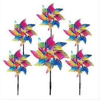 6stk glitrende vindspinnere til gård og have, græsplæne gård dekorationer farverige pinwheels reflekterende whirligigs vindmølle