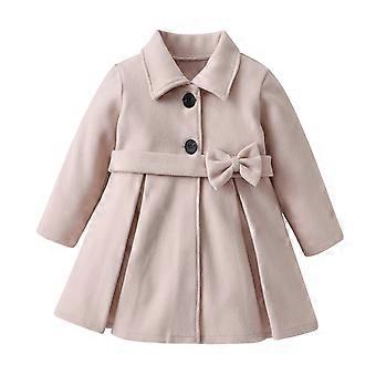 Børn Piger Vinter Uldfrakke Sløjfe Kjolefrakke Vinterjakker Knap Peacoat Småbørn Ligge Brak Tøj Overtøj Beige 7-8 År