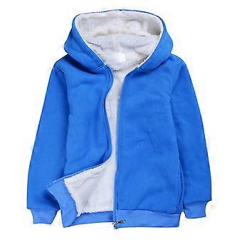 Bjutir Piger Efterår Vinter Langærmet Ensfarvet Varm Vindtæt Hætte Lynlås Hættetrøje Jakke Overfrakke Blå Størrelse 3-4 År