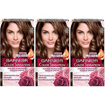 3 x Garnier Color Sensation Permanent Hårfarve - Lysende Brun 5.0