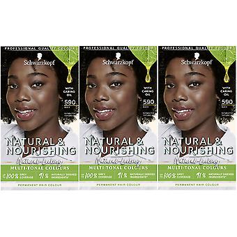 3 x Schwarzkopf naturlig og nærende permanent hårfarve - 590 sort